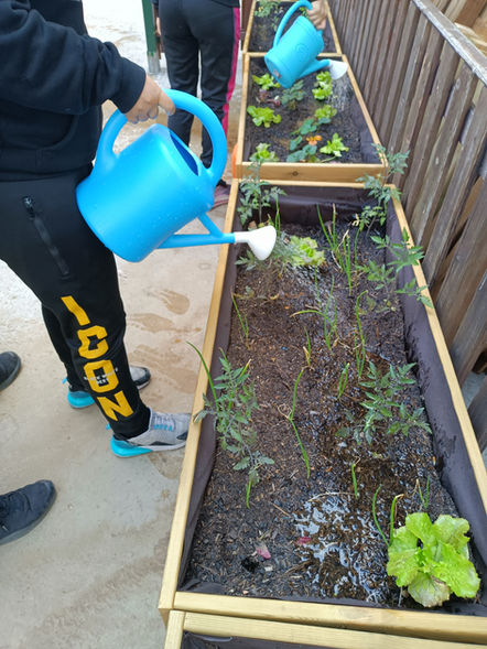 A l'inici del segon trimestre, es van fer menjadores per ocells perquè vinguessin a alimentar-se a l'escola durant l'hivern. A més, es van conèixer alguns dels ocells que podrien venir a les menjadores (pardal, merla, pit-roig, mallerenga carbonera i cuereta blanca). Es va dur a terme la planificació i la plantació de l'hort amb les hortalisses de primavera i estiu (enciams, tomàquets cherry, maduixes, pastanagues i cebes). Es van fer cartells amb els noms de les hortalisses de l'hort amb pals d'arbres polits i pintats perquè tota la comunitat educativa pugui saber quines plantes hi ha a l'hort.