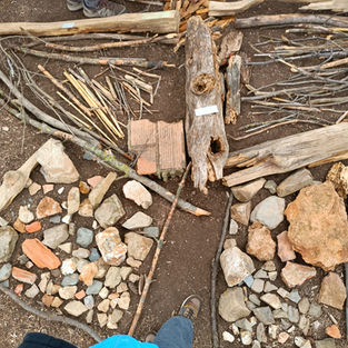 11:15 h: estona de joc lliure (els infants poden jugar per la zona, també poden utilitzar alguns dels materials que portem com la caixa de creativitat amb retoladors, aquarel·les, cordills i fils. Caixa d'eines amb llimes, paper de vidre, barrines i peladors per troncs. Hamaques i cordes. Maleta científica amb guies, lupes, pots de mostres.)